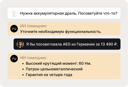 ИИ анализирует, чем отличаются методики менеджеров с высокой конверсией от менее результативных для конкретного продукта, и создает персональную карту развития для каждого сотрудника. Кроме того, он работает как голосовой тренажер, помогая про давцам совершенствовать навыки работы с возражениями и убеждения клиентов.